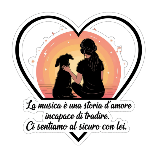 T-Shirt Unisex Classica | “La musica è una storia d’amore” – Donna o Uomo con Cane